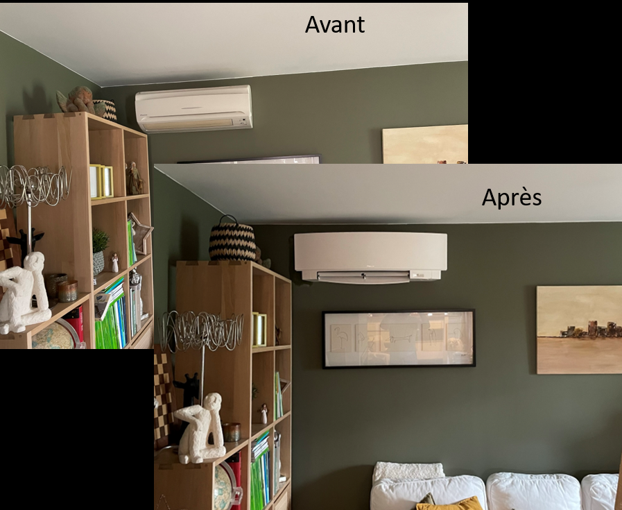 En remplacement de sa climatisation Daikin obsolète, le client a souhaité continuer à faire confiance à la marque Daikin et rajeunir le modèle intérieur par un équipement plus élégant et plus performant en passant du gaz RA410A au gaz R32 moins polluant et plus efficient.