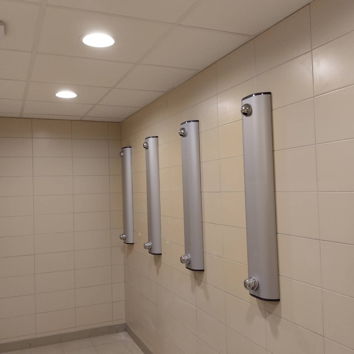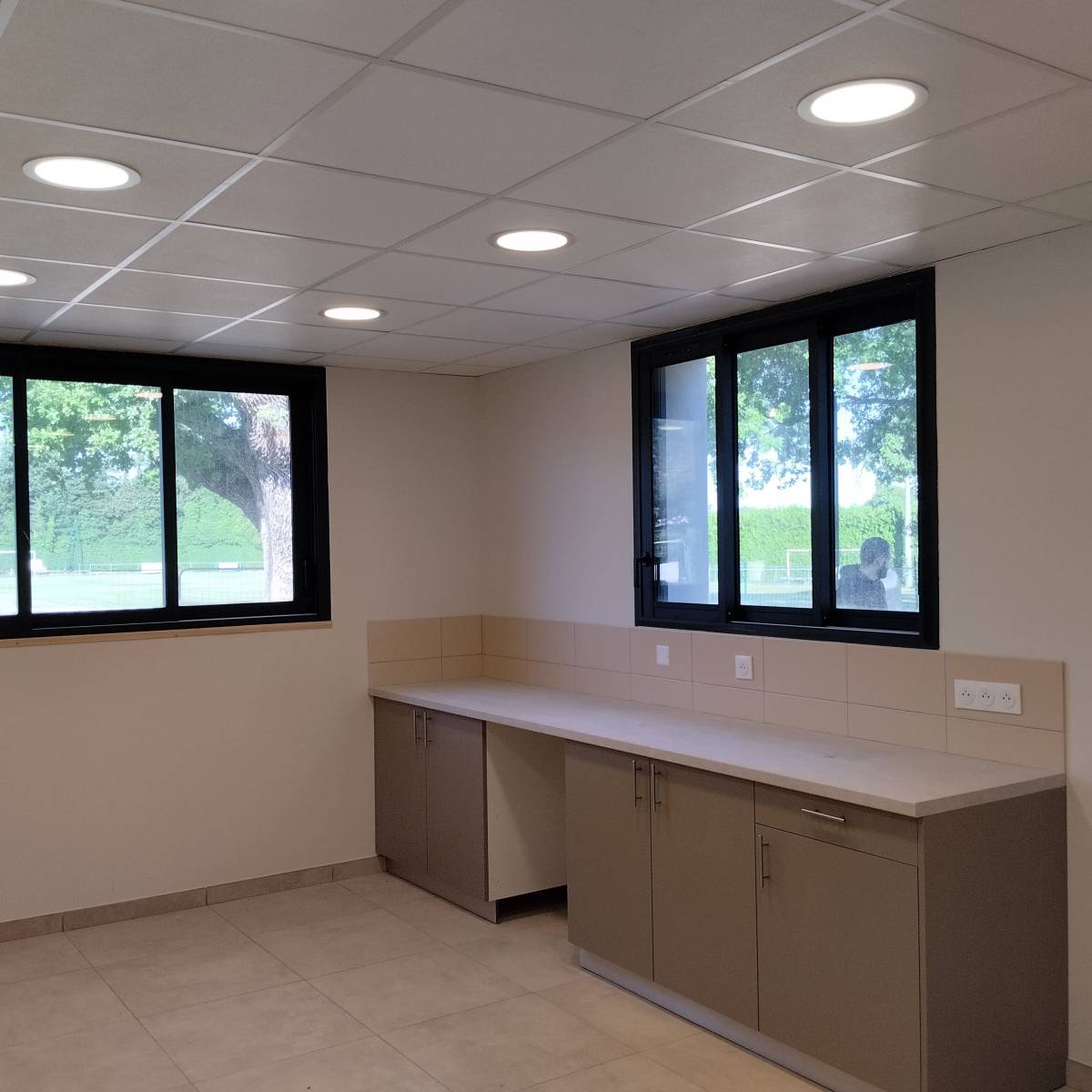La lustrerie a fait partie intégrante du confort et de l’esthétique des vestiaires. Nous avons sélectionné et installé des luminaires adaptés aux besoins spécifiques de chaque zone. Nos solutions ont permis :